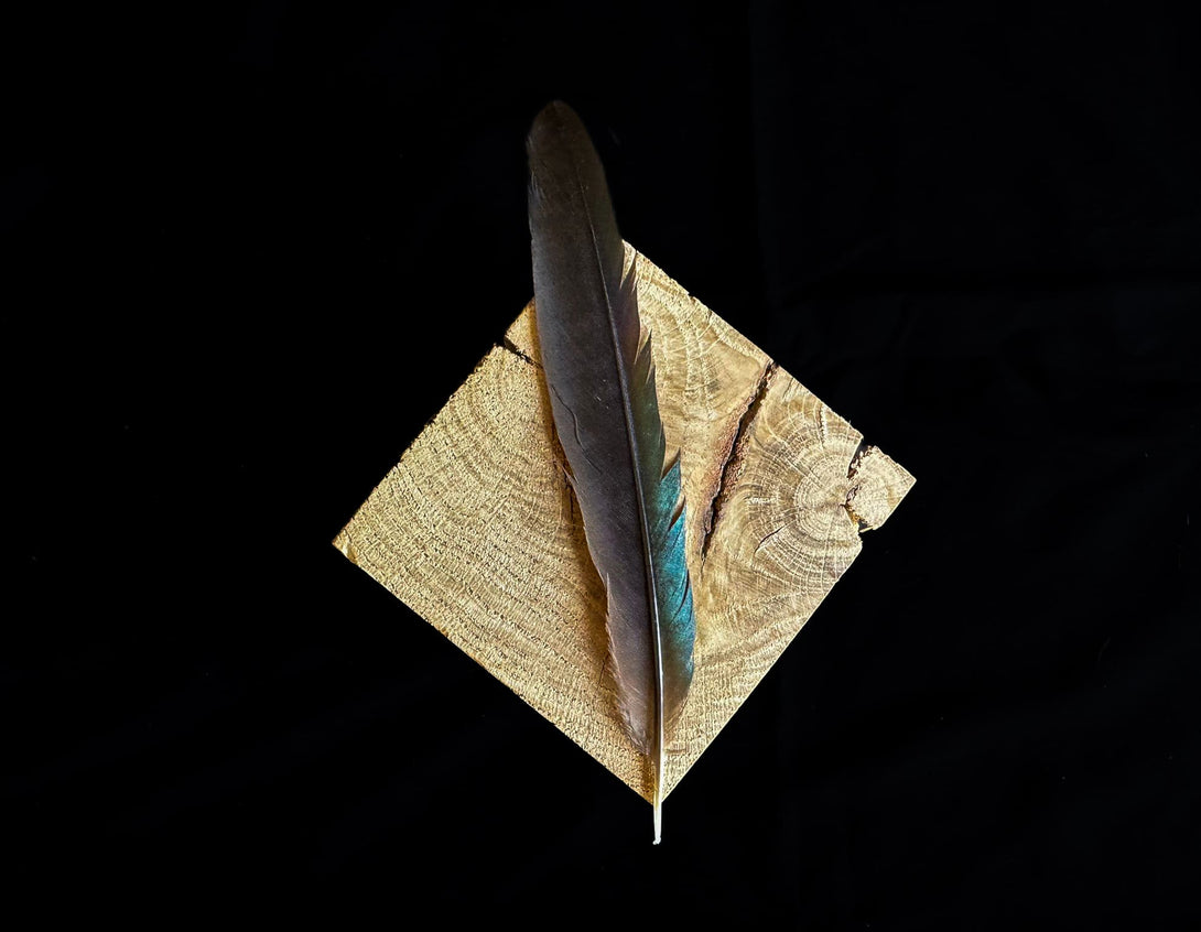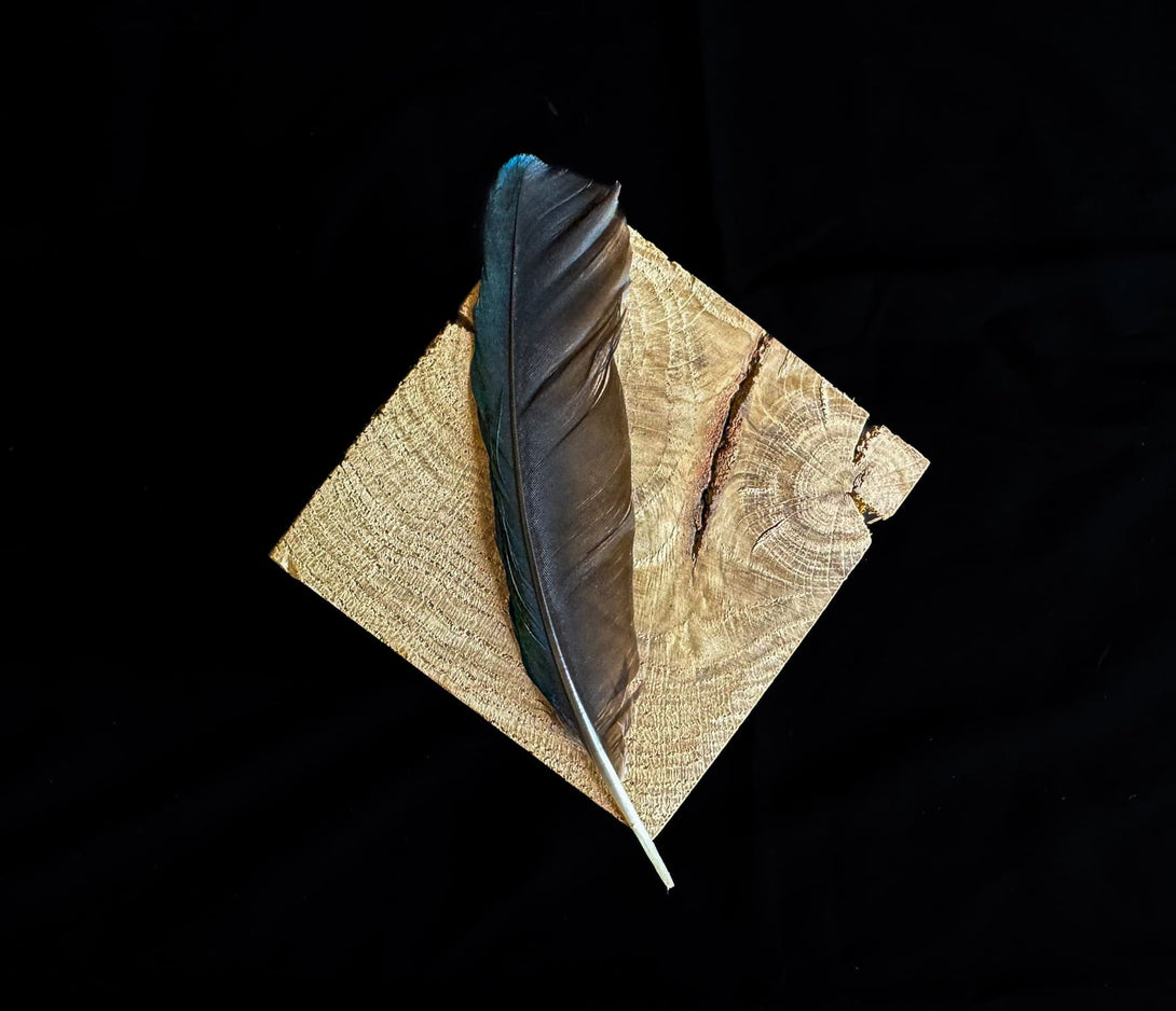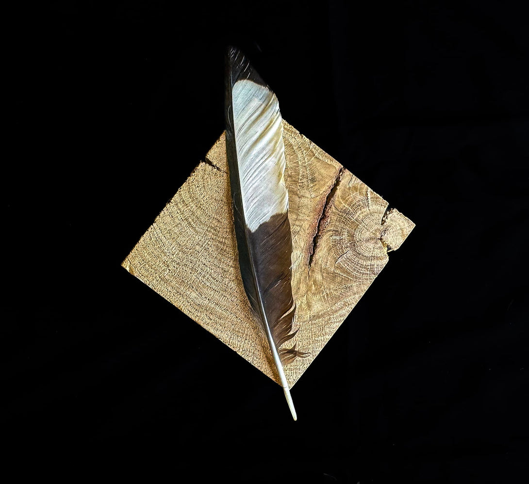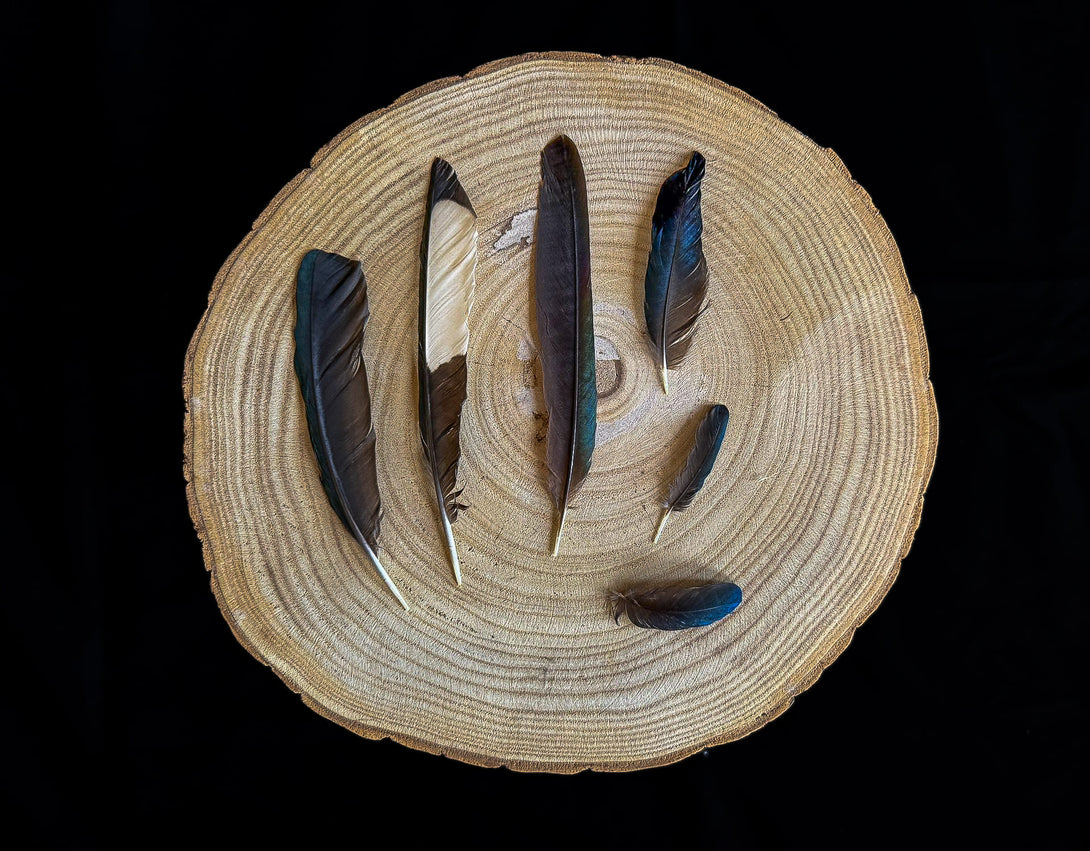 - 1 black, white, and green magpie feather, 6 to 7 in
