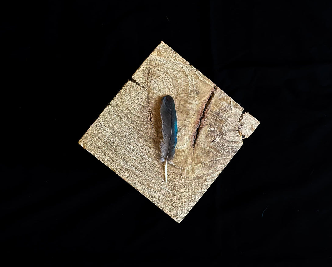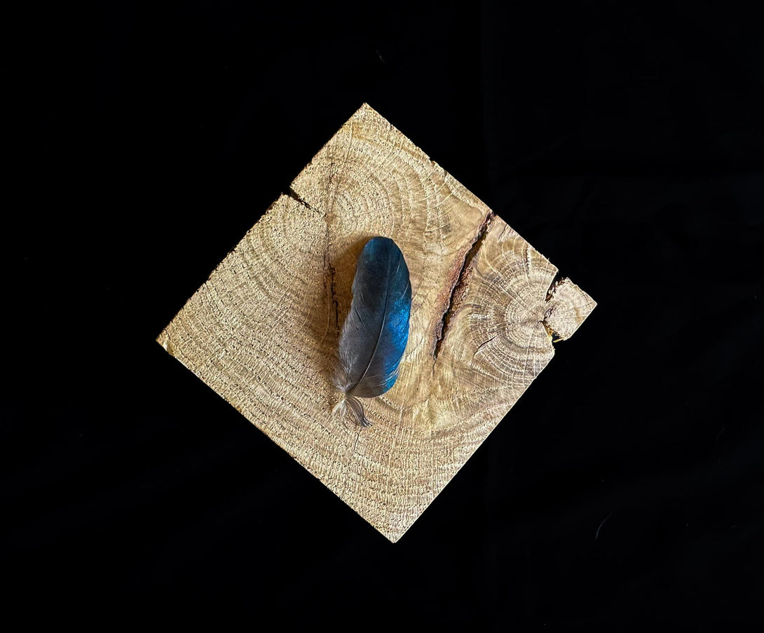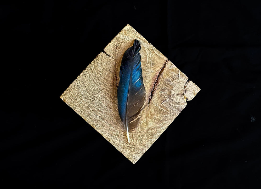 - 1 small black and blue magpie feather, 1,6 to 2,4 in